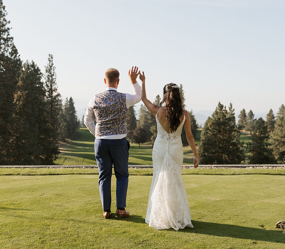 Alexandra and Mitchell couldn’t have chosen a more beautiful day for their outdoor Kelowna wedding! They exchanged vows under a white arch draped in colorful florals by Tangerine Orchid with a scenic view of the grove of Ponderosa pines behind them & blue skies above them. Every shot—from the lush outdoor ceremony to the heartfelt toasts inside the reception hall—tells a story of a day filled with joy and connection. Even down to the bridal portraits on the golf course, a nod to Mitch’s love for the sport, had meaning. (A little note to future brides considering Gallagher’s Canyon: look into alternative locations for portraits as there's not a lot of space for extra portraits at the golf course.)